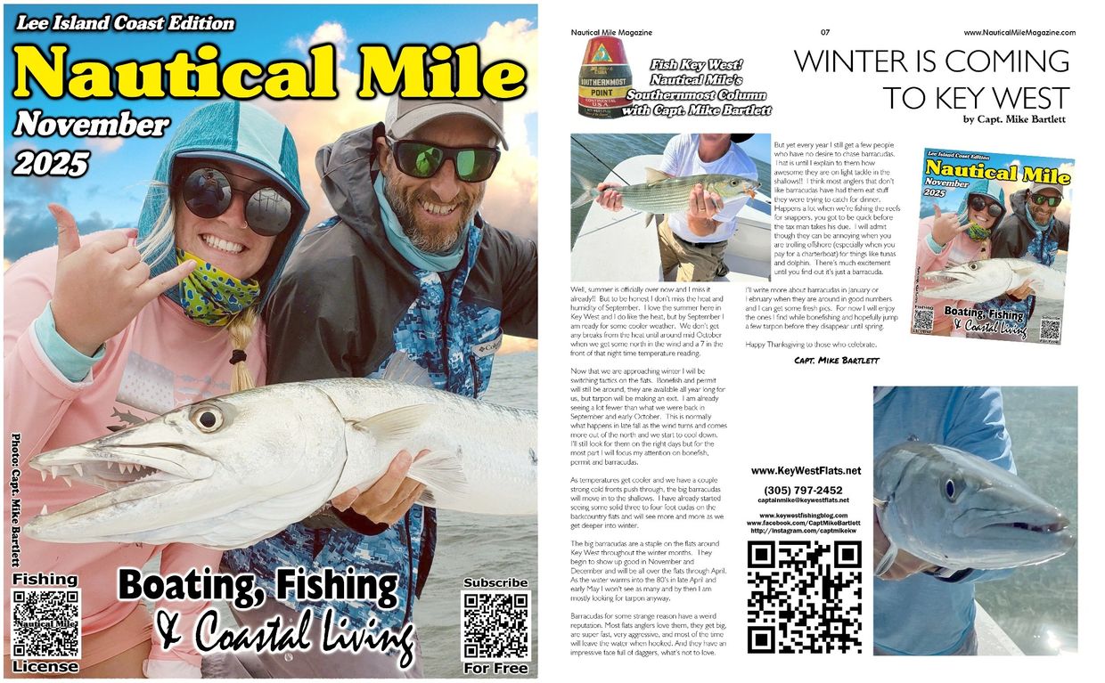 As temperatures get cooler and we have a couple strong cold fronts push through, the big barracudas will move in to the shallows. I have already started seeing some solid three to four foot cudas on the backcountry flats and will see more and more as we get deeper into winter.