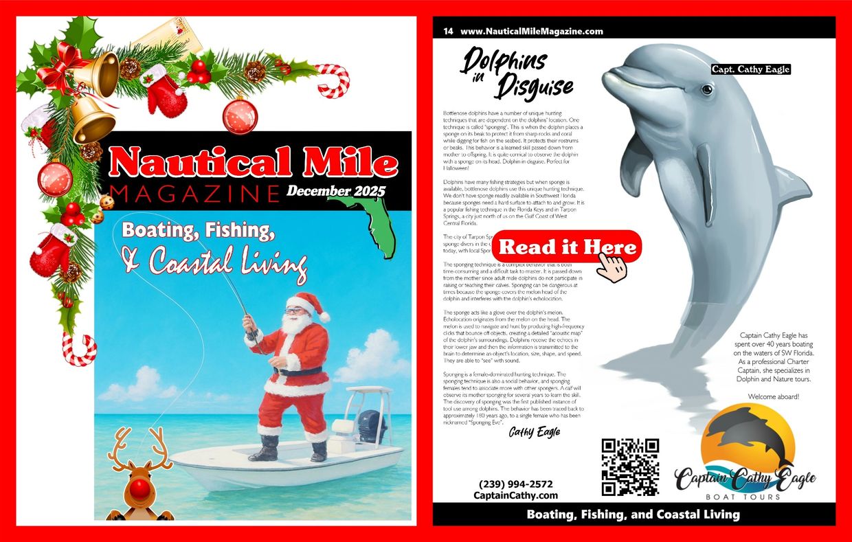 Dolphins have many fishing strategies but when sponge is available, bottlenose dolphins use this unique hunting technique. We don’t have sponge readily available in Southwest Florida because sponges need a hard surface to attach to and grow.