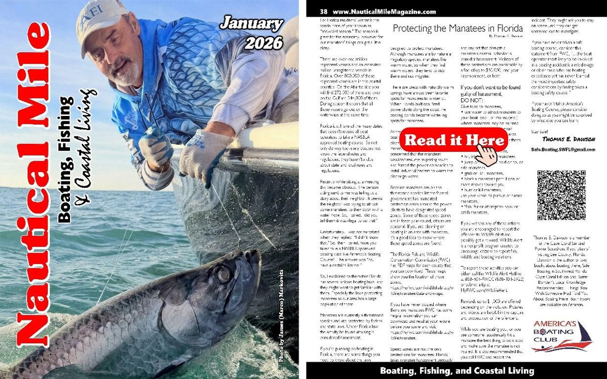 Tomas E. Dawson has been teaching safe boating at the Cape Coral Sail and Power Squadron in SW Florida since 2018. Dawson developed and is teaching a local waters seminar that discusses boating in Lee County. The seminar is offered during snow-bird season starting again on October14th. You reserve your seat by signing up for the seminar on line at ccsaps.org. Clicking on the Events/Seminars button to find all upcoming dates and signup. A book based on the seminar, “Barret Bonden’s Local Knowledge Recommended” is available on Amazon along with i WSn Thomas E. Dawson has been teaching safe boating at the Cape Coral Sail and Power Squadron isince 2018. Dawson developed and is teaching a local waters seminar that discusses boating in Lee County. The seminar is offered during snow-bird season starting again on October14th. You reserve your seat by signing up for the seminar on line at ccsaps.org. Clicking on the Events/Seminars button to find all upcoming dates and signup. A book based on the seminar, “Barret Bonden’s Local Knowledge Recommended” is available on Amazon along with i WSn Thomas E. Dawson has been teaching safe boating at the Cape Coral Sail and Power Squadron isince 2018. Dawson developed and is teaching a local waters seminar that discusses boating in Lee County. The seminar is offered during snow-bird season starting again on October14th. You reserve your seat by signing up for the seminar on line at ccsaps.org. Clicking on the Events/Seminars button to find all upcoming dates and signup. A book based on the seminar, “Barret Bonden’s Local Knowledge Recommended” is available on Amazon along with “Safe Boating in Southwest Florida, Cape Coral Edition.”