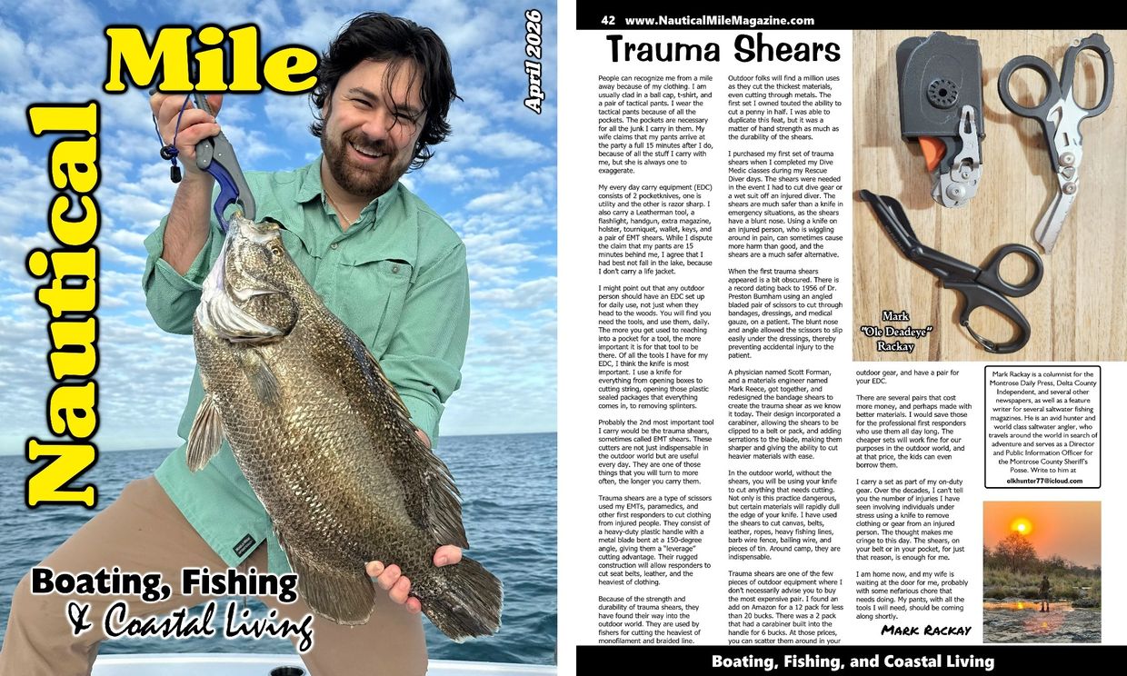 Because of the strength and durability of trauma shears, they have found their way into the outdoor world. They are used by fishers for cutting the heaviest of monofilament and braided line. Outdoor folks will find a million uses as they cut the thickest materials, even cutting through metals. The first set I owned touted the ability to cut a penny in half. I was able to duplicate this feat, but it was a matter of hand strength as much as the durability of the shears.
