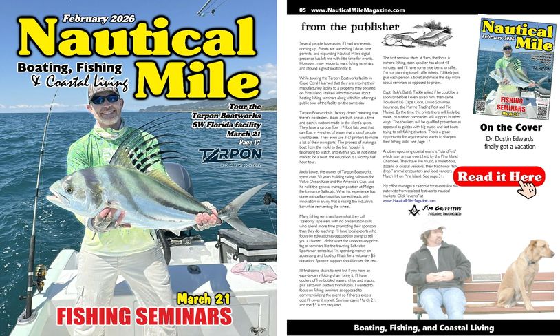 Capt. Rob’s Bait & Tackle asked if he could be a sponsor before I even asked him, then came TowBoat US Cape Coral, David Schuman Insurance, the Marine Trading Post and Fix Marine. By the time this prints there will likely be more, plus other companies will support in other ways. The speakers will be qualified presenters as opposed to guides with big trucks and fast boats trying to sell fishing charters. This is a great opportunity for anyone who wants to sharpen their fishing skills.