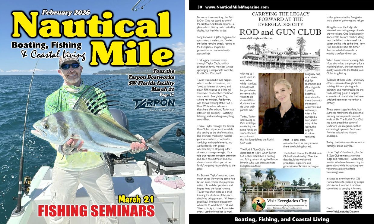 These aren’t staged exhibits, but authentic reminders of a place that has long drawn people from all walks of life. The Rod & Gun Club has even graced the cover of Gulfshore Life magazine, further cementing its place in Southwest Florida’s cultural and historic landscape.