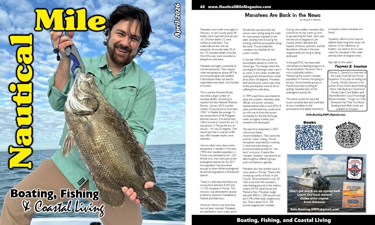 Thomas E. Dawson is a member of the Cape Coral Sail and Power Squadron. If you plan of visiting Lee County, Florida, Dawson is the author of two books about boating there, Safe Boating in Southwest Florida Cape Coral Edition and Barret Bonden’s Local Knowledge Recommended - Things You Wish Someone Had Told You About Boating Here! Both books are available on Amazon.